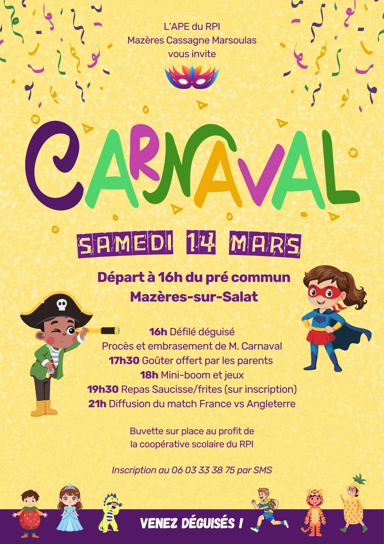 Le carnaval des écoles du RPI aura lieu demain samedi 14 mars.