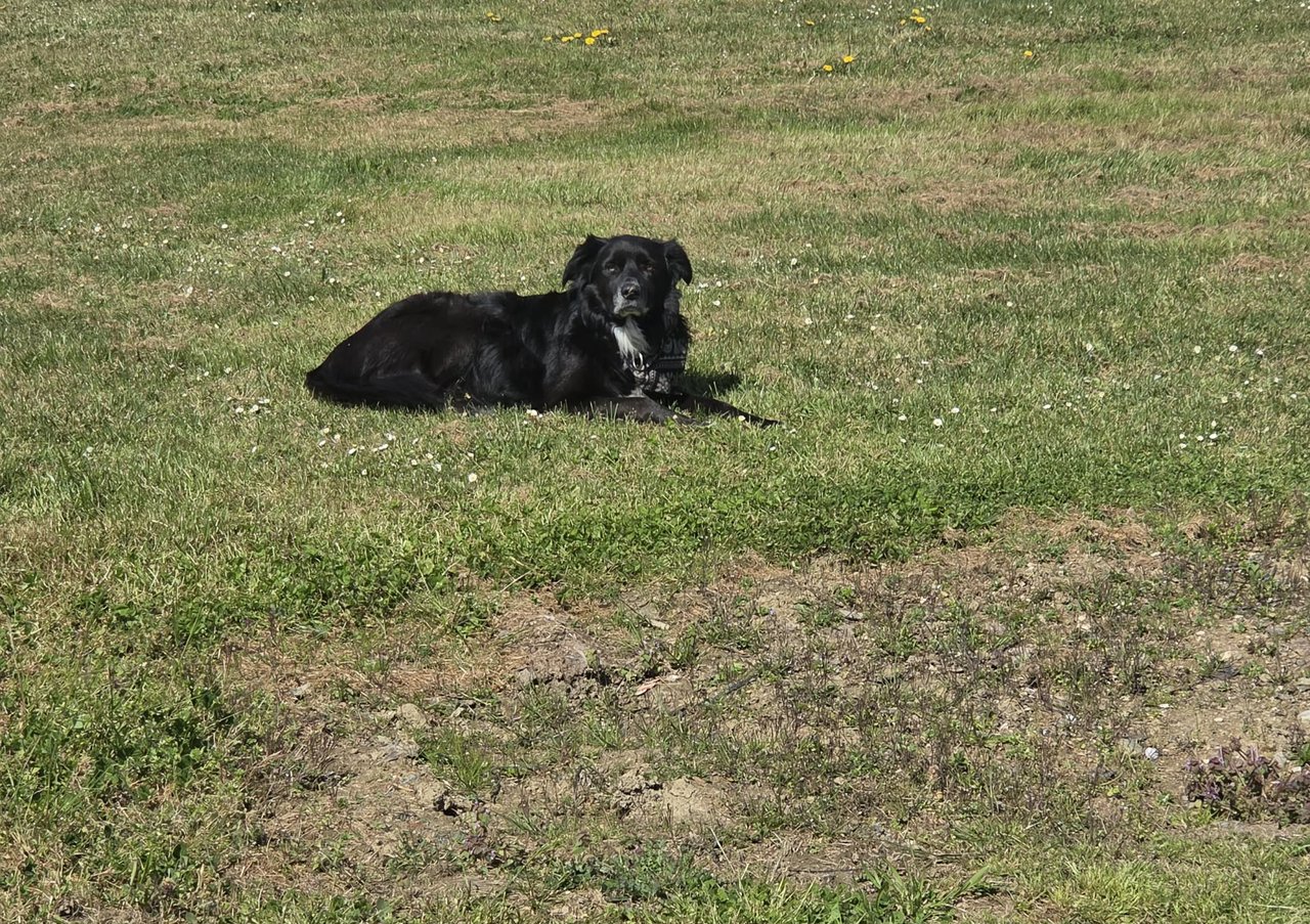 Ce chien erre dans le village, aujourd’hui vu à Las Coumeres , il porte un collier bandana noir.