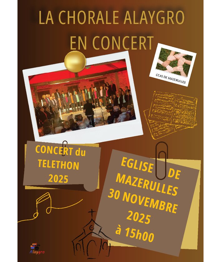 Le CCAS et Mazerulles Animation vous convient à un concert de la chorale Alaygro au profit du Téléthon le