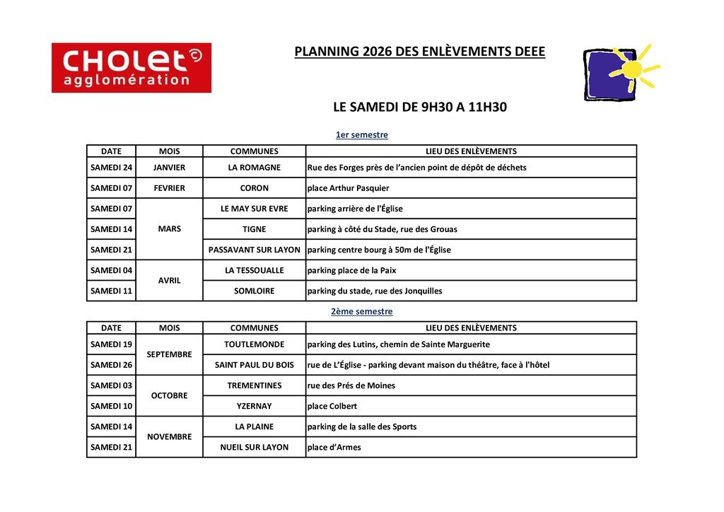 Vous trouverez ci-joint le planning de collecte pour l'année 2026.