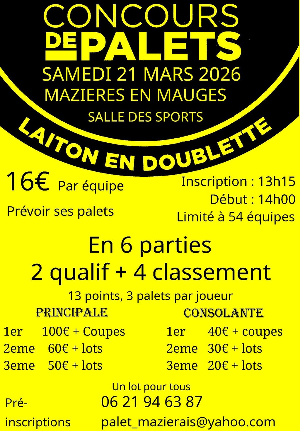 Le Palet Maziérais organise son concours de palets le samedi 21 mars à la salle des sports de Mazières-en-Mauges.