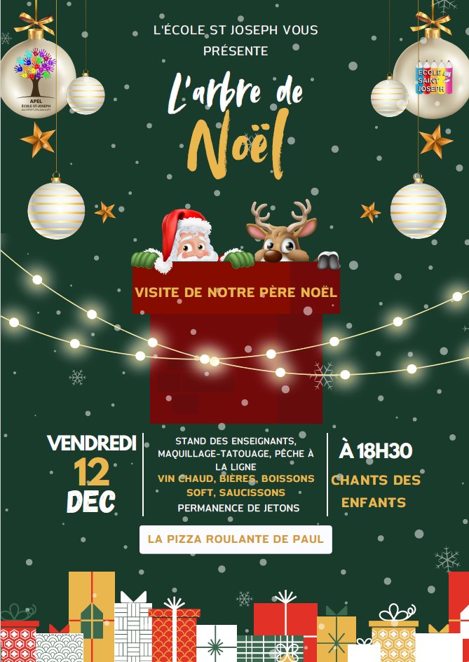 Le traditionnel marché de Noël de l'école se tiendra le vendredi 12 décembre 2025 sur l'esplanade de la Gagnerie.