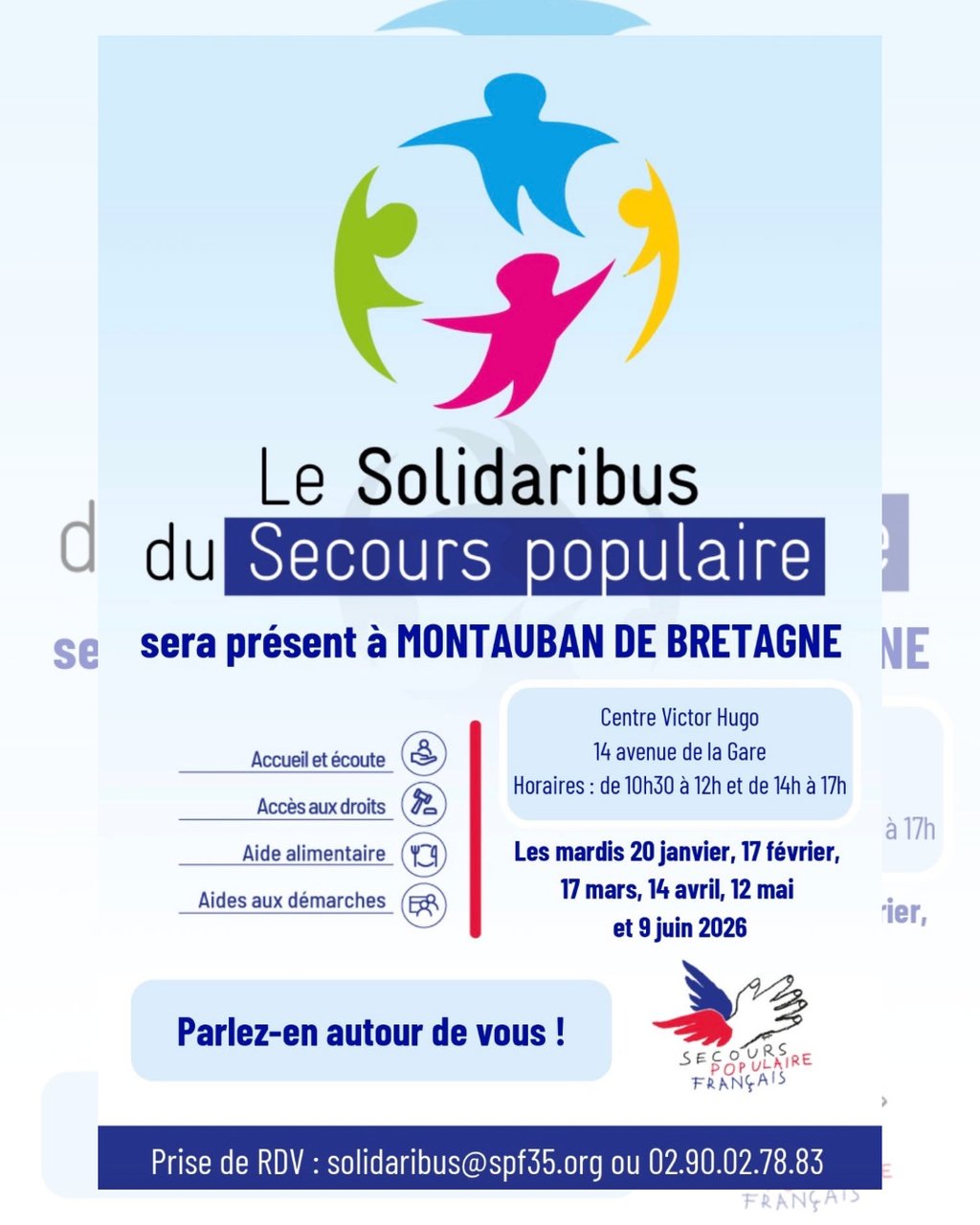 Le Solidaribus du Secours populaire sera présent à Montauban-de-Bretagne, au Centre Victor Hugo