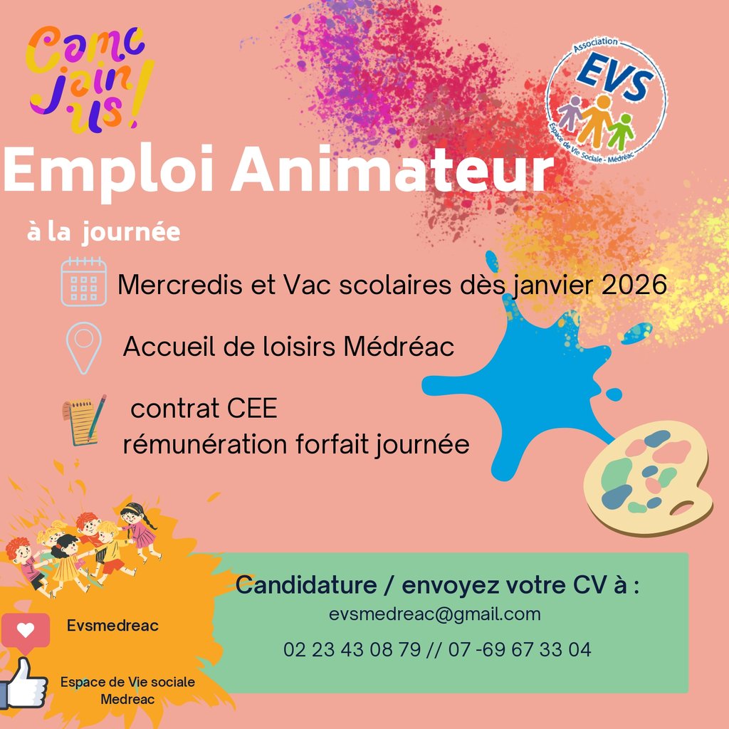 L'Espace de Vie Sociale de Médréac est à la recherche d'animateurs .
