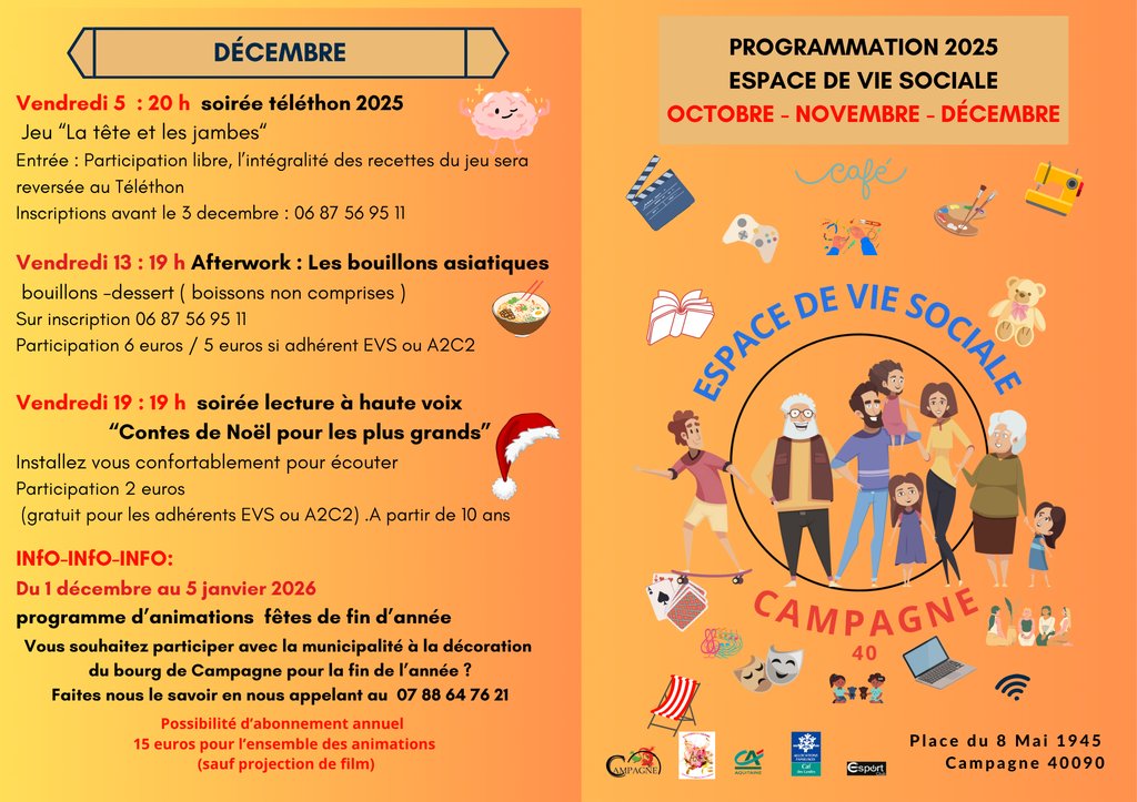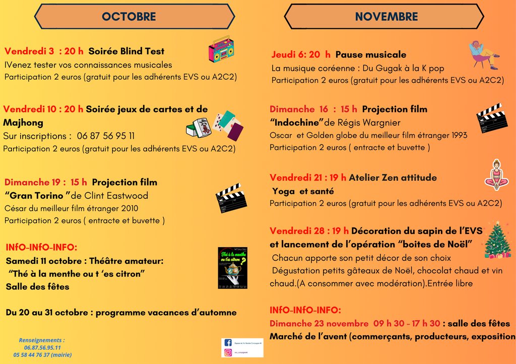 L'Espace de Vie Sociale vous propose son programme d'animations au décours du dernière trimestre de l'année.