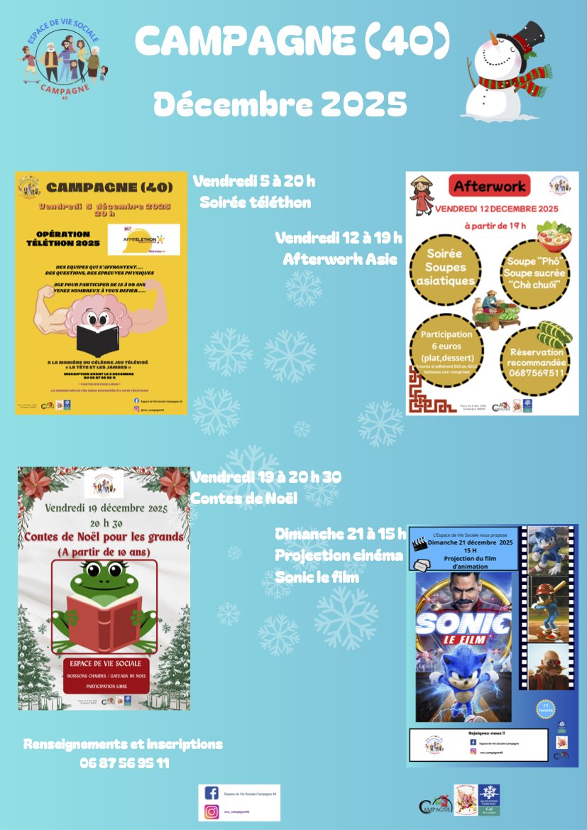 Bienvenue à l'Espace de Vie Sociale pour les animations de ce mois de décembre. Renseignements 06 87 56 95 11
