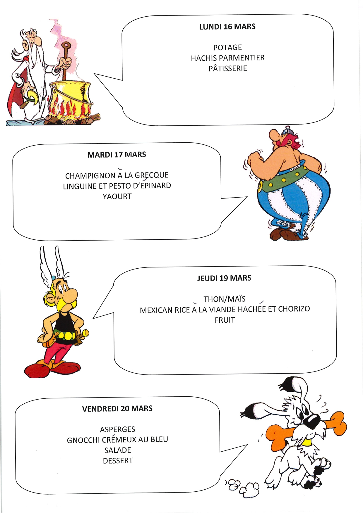 Menus cantine du lundi 17 au vendredi 20 mars