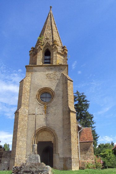 Le clocher et sa flèche en pierres ont été ajoutés au-devant de la nef, la dernière reconstruction datant des années 1860.