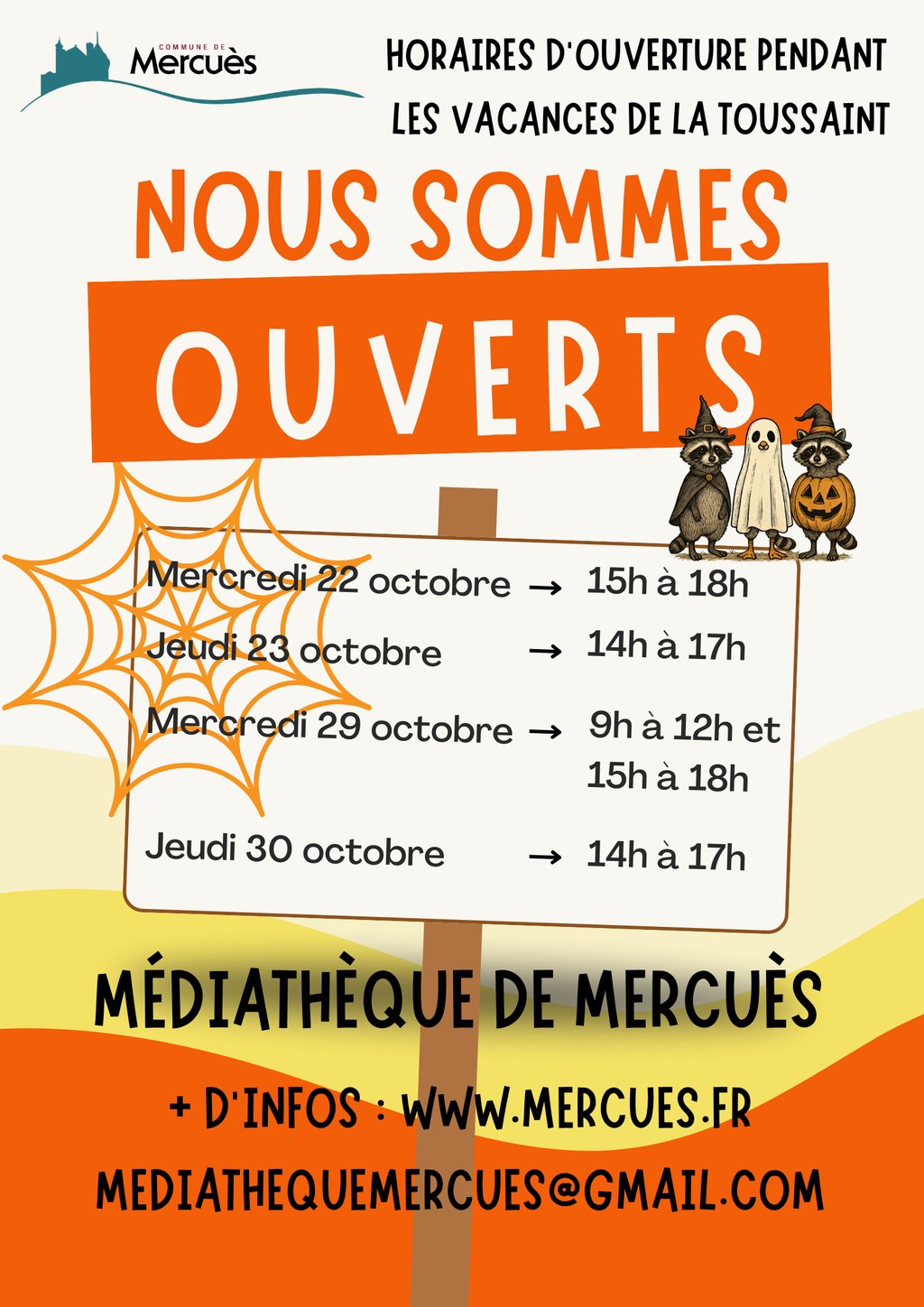 Ouverture de la médiathèque pendant les vacances de la Toussaint