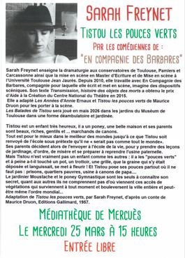 Lecture mise en scène: Tistou les pouces verts de Sarah Freynet