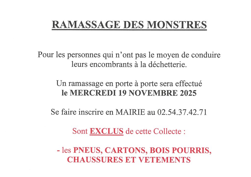 Nous vous informons que toutes personnes non inscrites ne pourra prétendre au ramassage des encombrants.