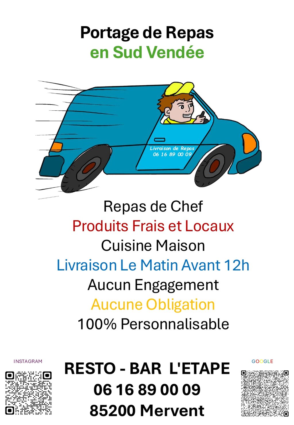 PORTAGE DE REPAS SUR LA COMMUNE ET ENVIRONS (10-15 KMS AUTOUR DE MERVENT)