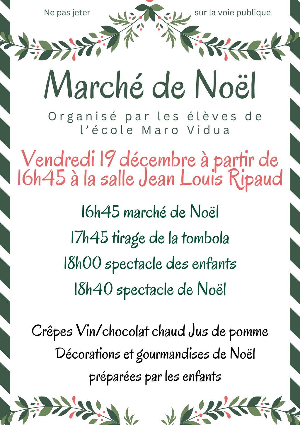 Les élèves de l'école Maro Vidua organisent un marché de Noël à partir de 16h45, à la salle Jean-Louis Ripaud.
