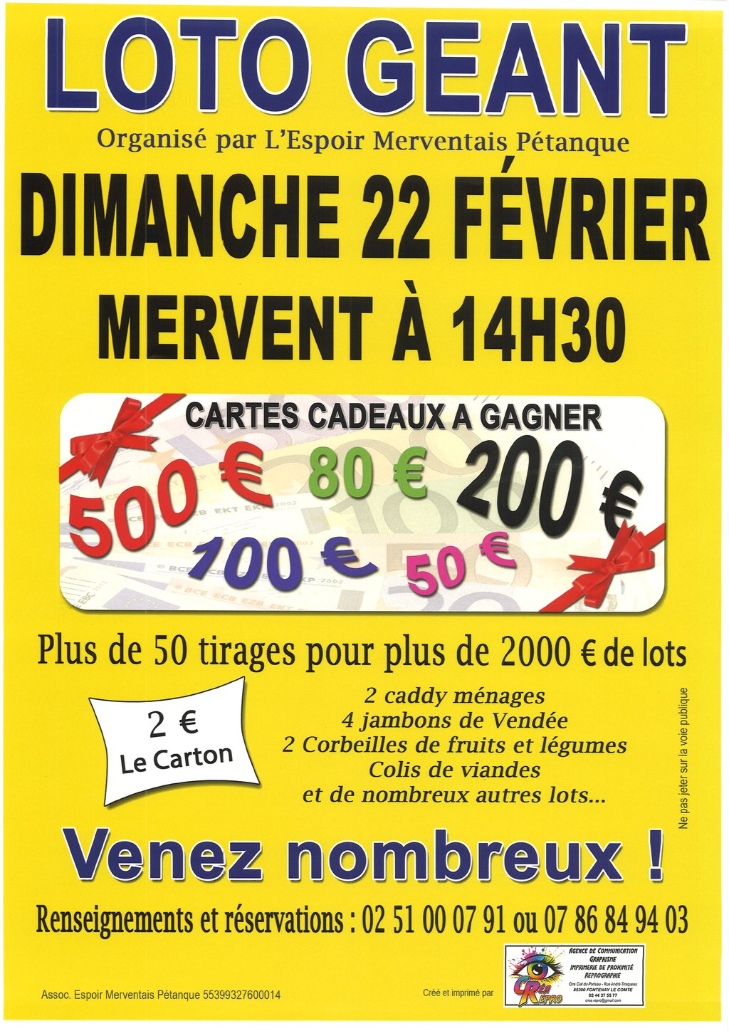 Loto géant organisé par l'association L'Espoir Merventais Pétanque