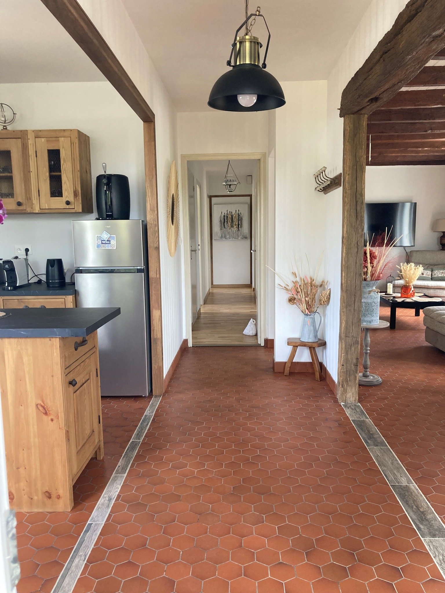 Nous l’avons rénové avec amour pour que vous vous sentiez comme à la maison. Il est accessible par un escalier extérieur (toutes nos excuses par avance à nos amis à mobilité réduite). Poussez la porte et découvrez une belle pièce de vie spacieuse d’environ 50 m2. Après une bonne balade à pied ou en vtt en forêt, ou un tour de canoé ou de paddle sur le lac, vous pourrez passer de beaux moments de partage sur le canapé familial. Un insert est à disposition pour les soirées les plus fraiches. Vous disposez également d’une cuisine ouverte avec piano de cuisson pour les grandes tablées et lave-vaisselle pour faciliter les corvées.