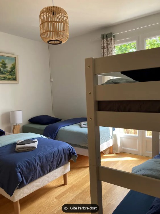 3 chambres complètent le logement. 2 sont dotées d’un lit de 2 personnes et une permet d’accueillir 4 personnes (2 lits en 90 et 1 lit superposé). Cette dernière chambre dispose d’une salle d’eau privative avec douche et vasque.