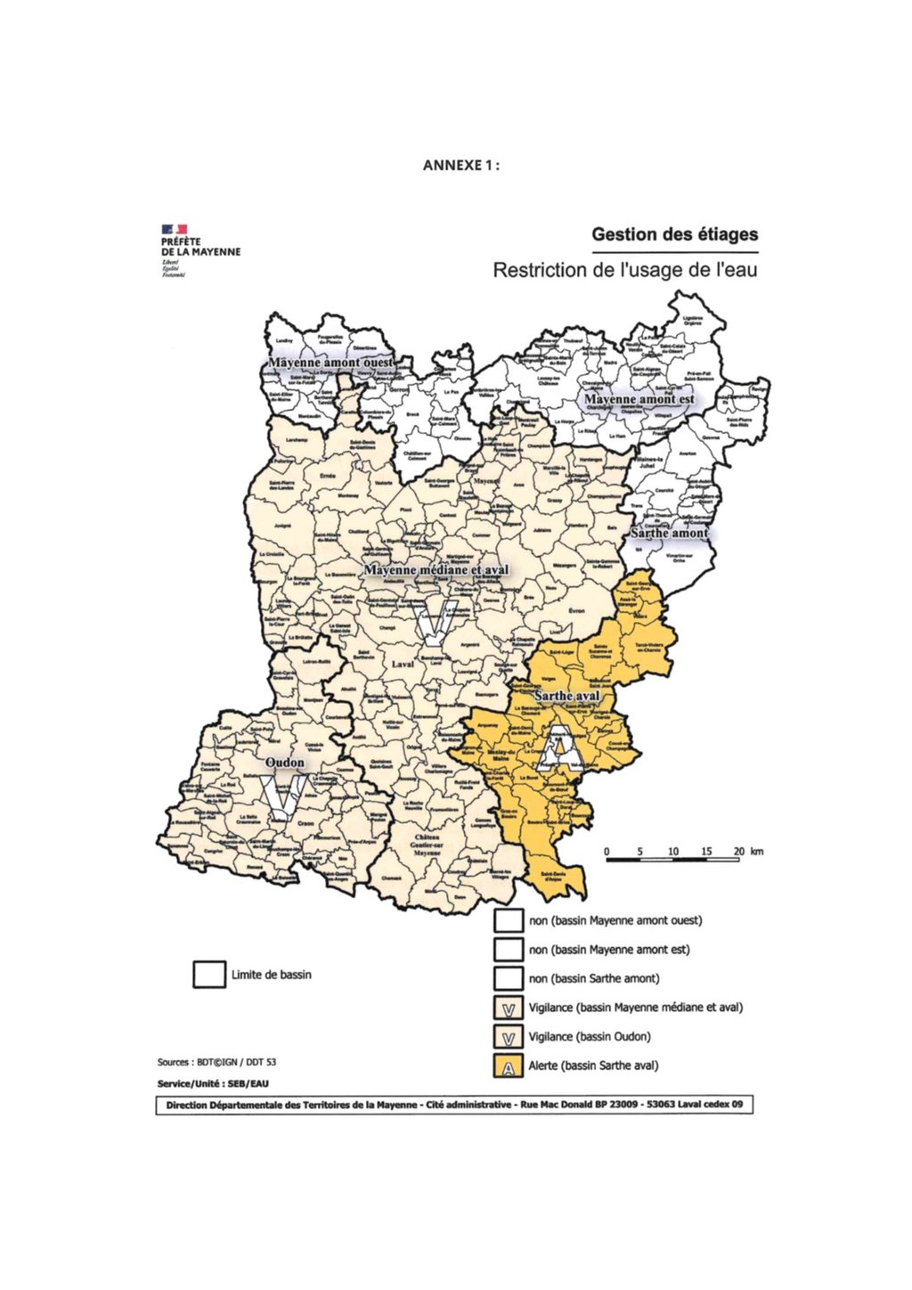 Je vous prie de trouver ci-après la situation de l'étiage au 10 novembre 2025 pour le département de la Mayenne.