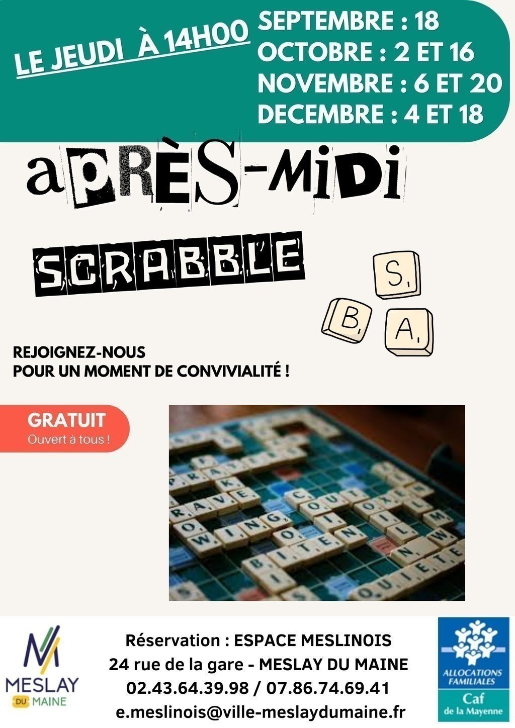 Venez passer une après midi scrabble dans un moment de convivialité !