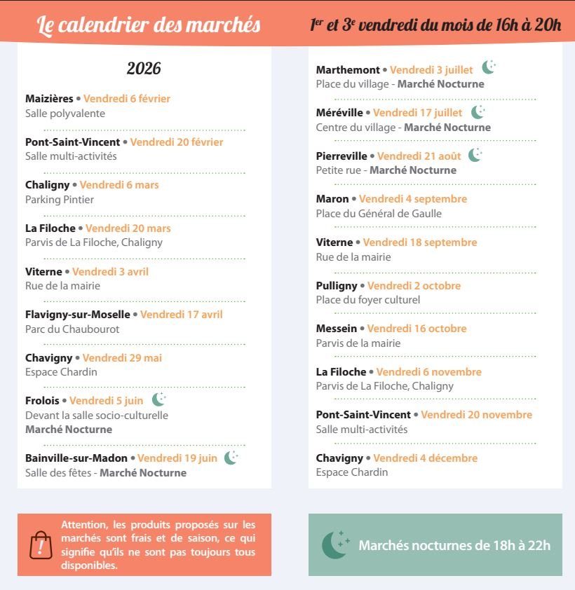 Venez découvrir la liste des marchés de Moselle et Madon ainsi que le détail des producteurs locaux dans le fichier en pièce jointe