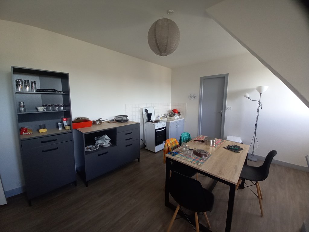 👉Il est disponible immédiatement : cuisine et buanderie communes, 3 espaces privatifs de 25 m² (chambre, salle de bains, wc), entièrement meublés et équipés (canapés convertibles, armoire de rangement, gazinière, machine à laver, réfrigérateur, ...)