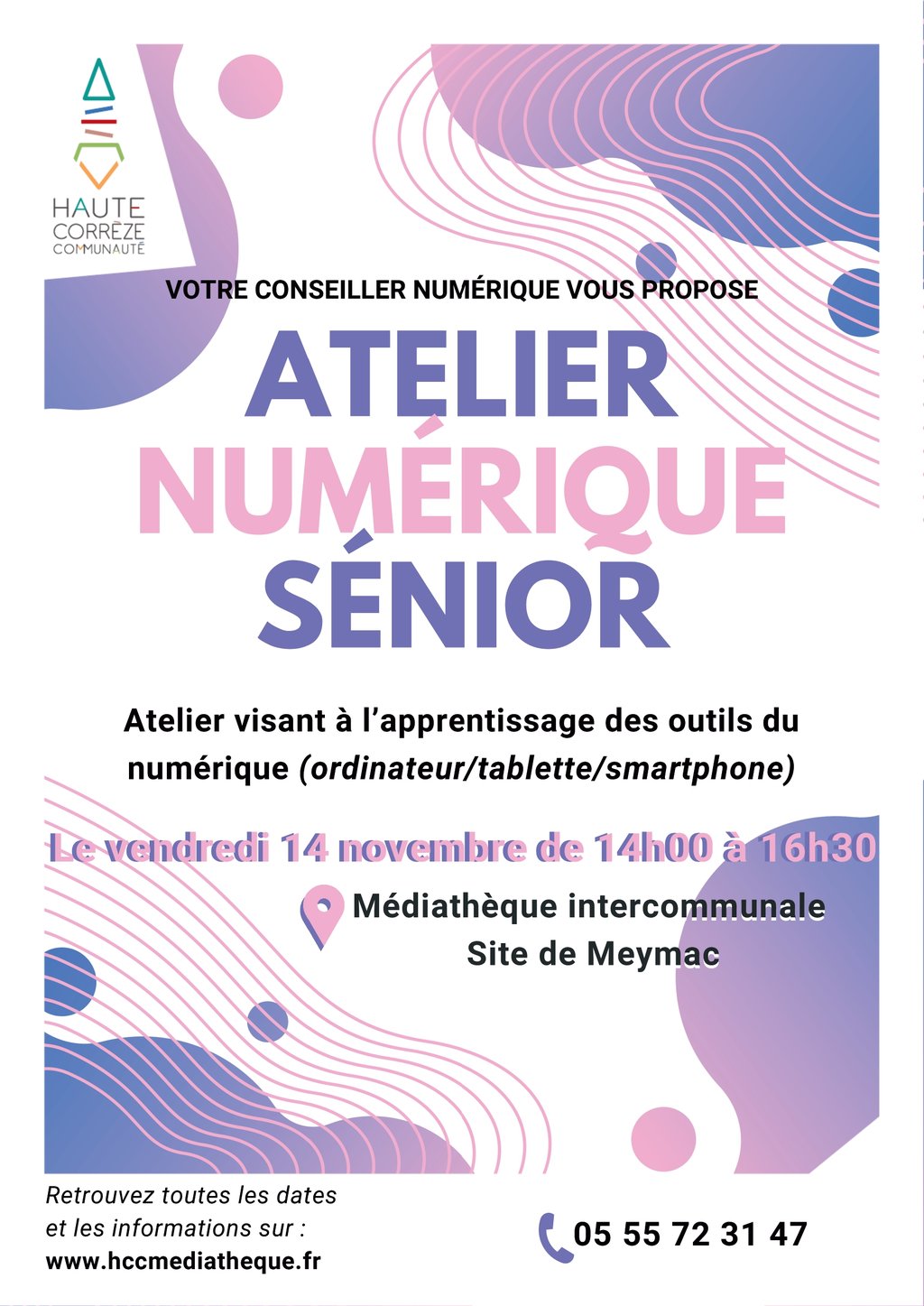 Le conseiller numérique de Haute-Corrèze Communauté propose un atelier numérique sénior à la médiathèque site de Meymac : apprentissage des outils numériques : ordinateurs, tablettes, smartphones