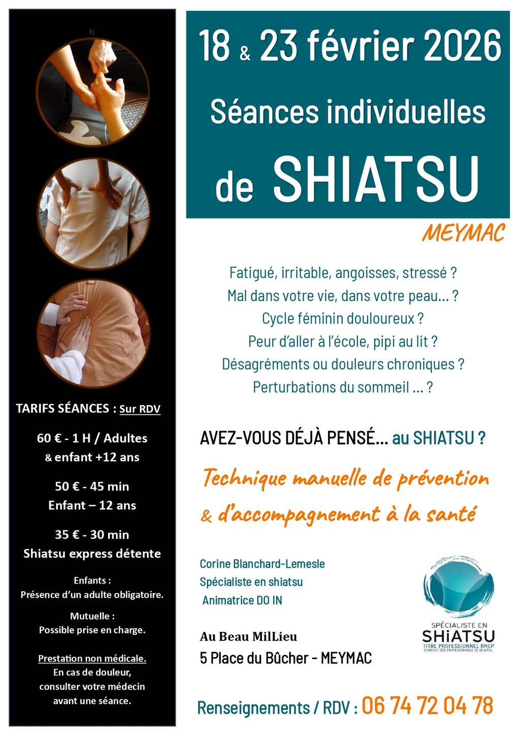 AU BEAU MILLIEU : SEANCES INDIVIDUELLES DE SHIATSU