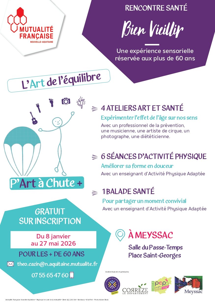 - 8 janvier 2026 (9h30-12h) : « Mon équilibre en mouvement » avec un professionnel de la prévention et un professeur de danse