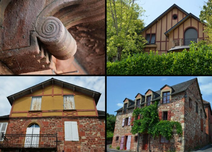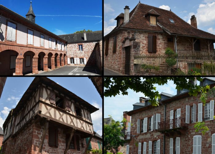 C’est le grès rouge de Meyssac, utilisé à toutes les époques, qui fait l’unité du bourg. Certaines demeures retiennent particulièrement l’attention, comme la maison Verdès (XVI ème siècle), avec sa tour en façade et sa porte richement décorée. Plusieurs maisons sont ainsi dotées d’une tour permettant l’accès aux étages.