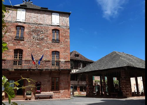 Discrètement cachée derrière l’église se trouve la halle aux grains du XVIII ème siècle, témoin de l’activité commerçante de Meyssac. Son imposante toiture d’ardoise coiffe une charpente en châtaignier que supportent des piliers et des colonnes (…de grès rouge, bien entendu !). Aujourd’hui, elle abrite diverses manifestations… et les jeux des enfants du quartier.
