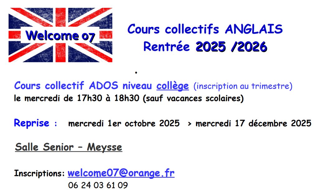 🇬🇧 L’association reprend du service et propose des cours collectifs pour adolescents niveau collège, à partir du 1er octobre.