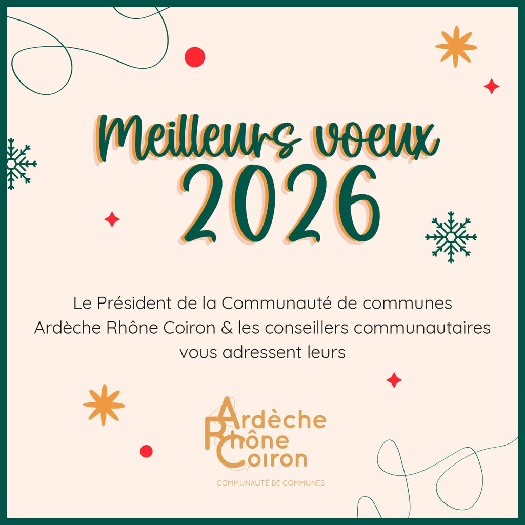 Yves Boyer, Président de la Communauté de communes Ardèche Rhône Coiron et les conseillers communautaires vous présentent leurs ✨ meilleurs vœux pour 2026 ✨