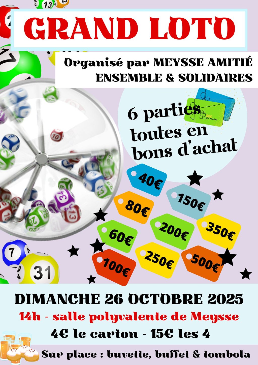 MEYSSE AMITIÉ, ENSEMBLE ET SOLIDAIRES organise un grand loto