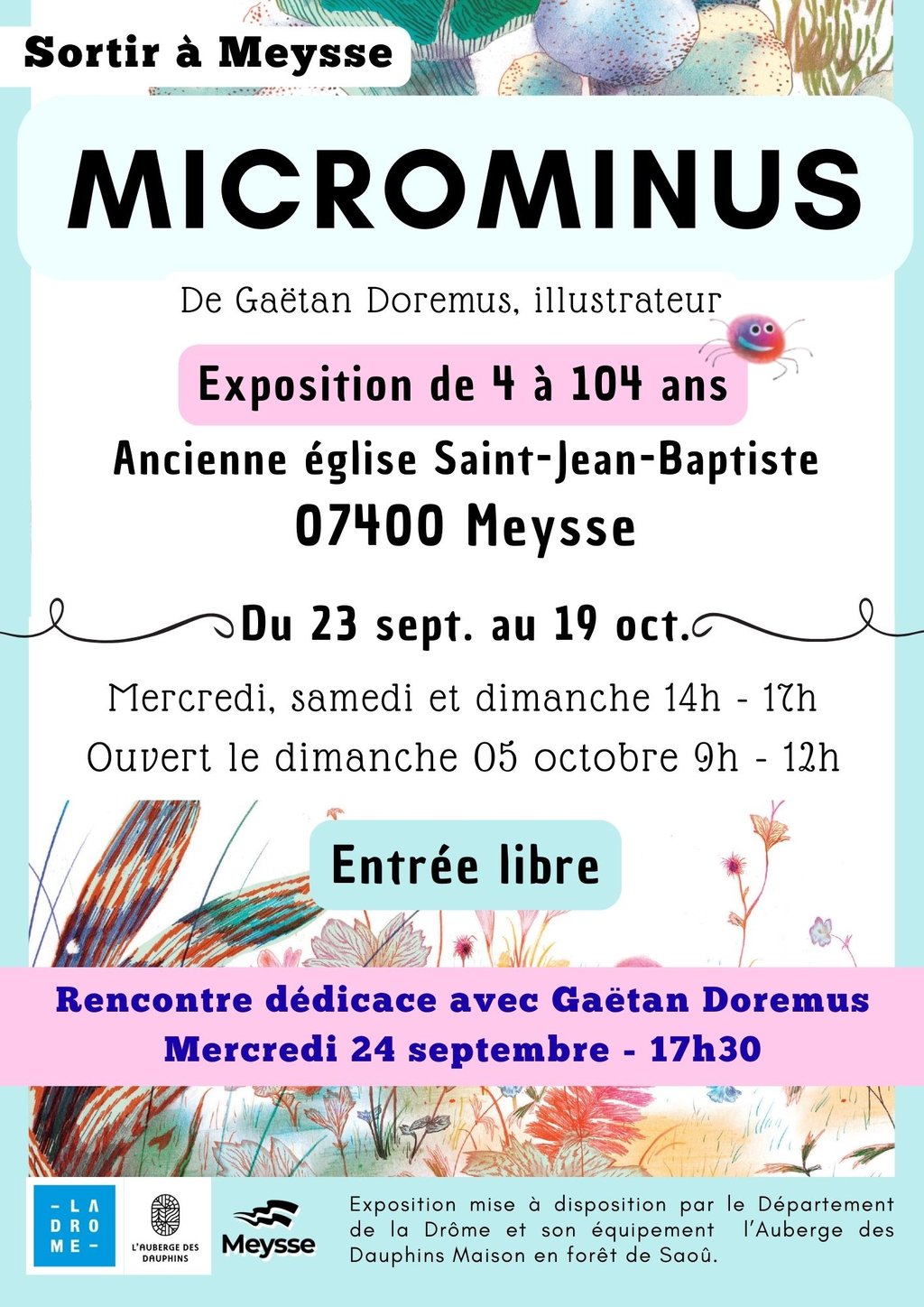 L'association Sortir à Meysse vous invite à vous immerger dans l'univers fascinant des petites bêtes à travers l'exposition MICROMINUS de Gaëtan Doremus. Vous pourrez compter sur "Rosie"l'araignée pour vous guider à travers cette aventure.