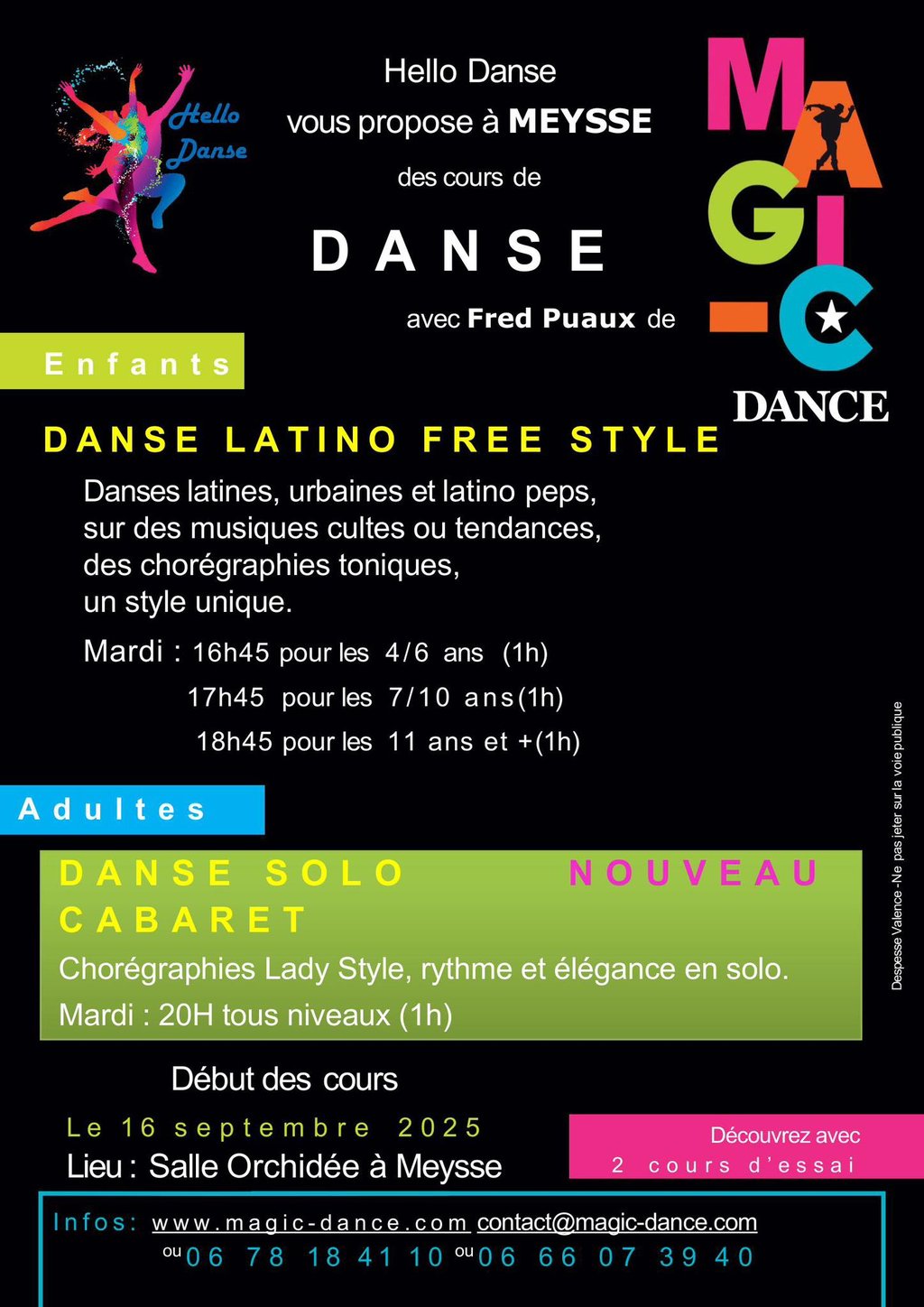 L’association Hello Danse a été crée en 2011 à Rochemaure et depuis la rentrée 2014-2015 est devenue une association Meyssoise.
