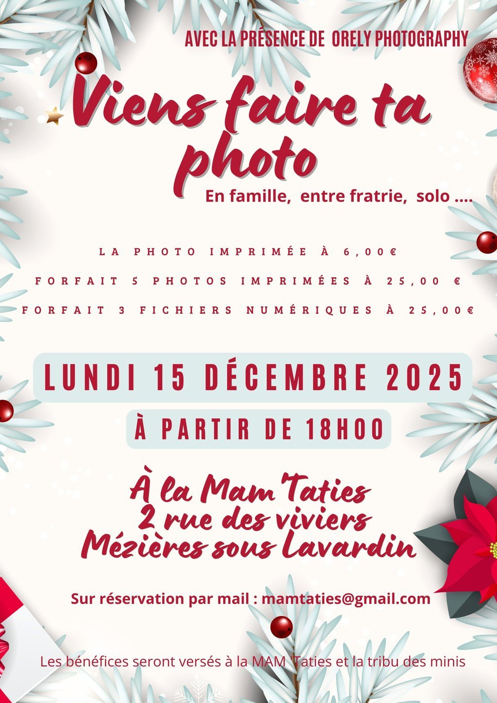 Nous avons le plaisir dâannoncer la prĂ©sence exceptionnelle de Orely Photographie pour une sĂ©ance photo spĂ©ciale fĂȘtes de fin d'annĂ©e !