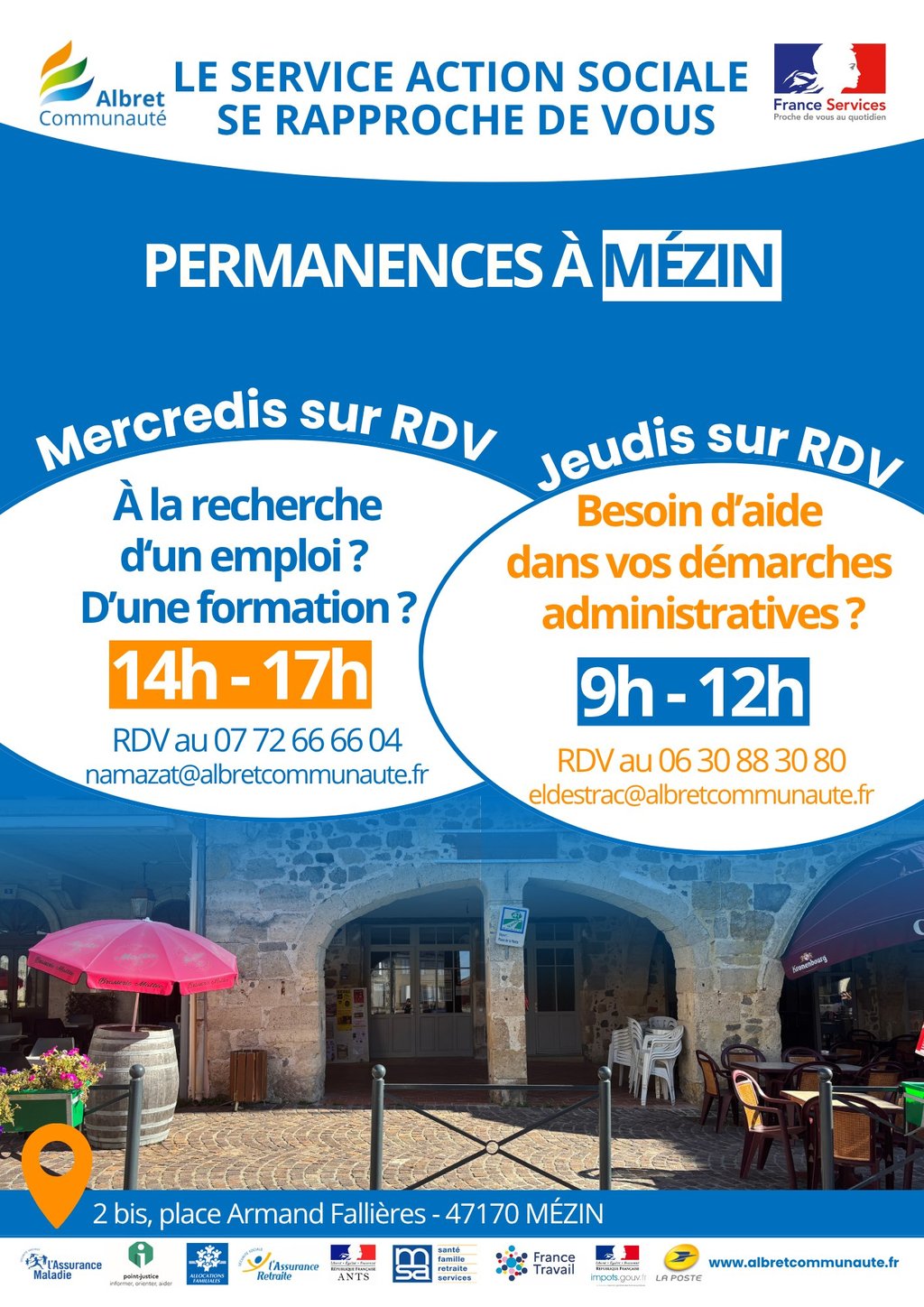 Venez rencontrer le Service Action Sociale lors des permanences organisées à Mézin le jeudi !