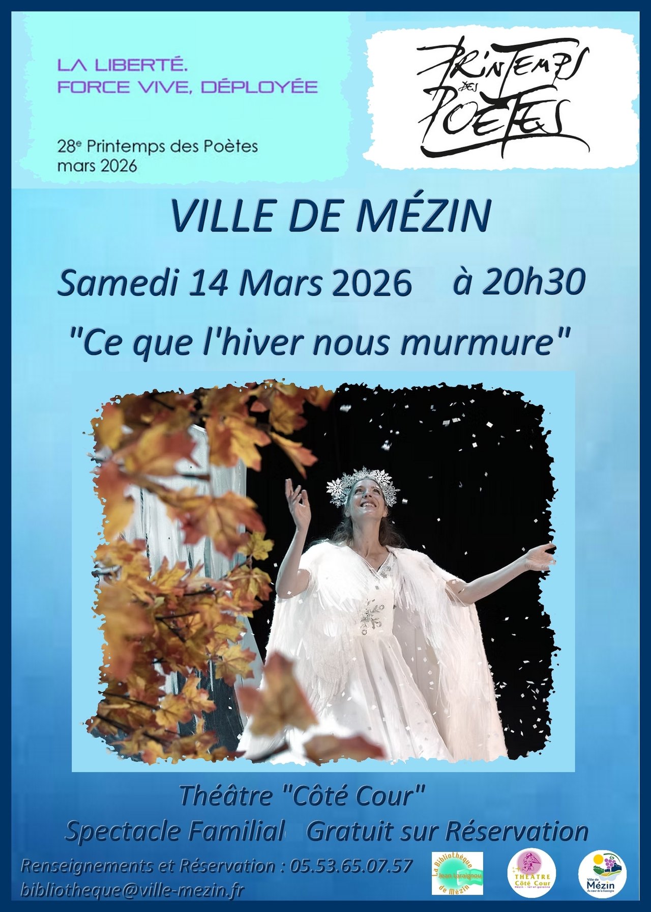 27ᵉ Printemps des poètes en France et le 10ᵉ à Mézin, élu village en Poésie.