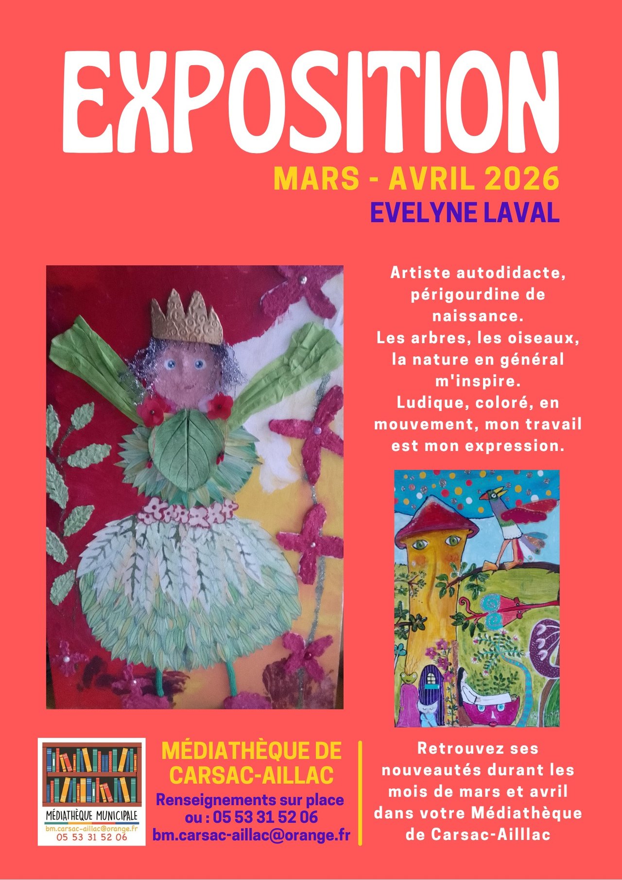 C'est au tour d'Evelyne Laval de présenter ses nouvelles créations dans votre médiathèque !