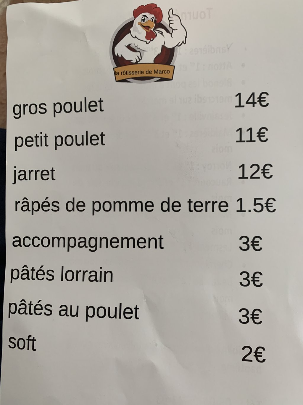 À partir du samedi 16 juillet, puis tous les 2ème et 4ème samedi soir du mois, la rôtisserie de Marco sera sur le parking au bord de Moselle. Au menu : poulet, jarret, pâtés lorrains, râpés de pomme de terre, soft... Possibilité de commander pour des événements. Tel. 0604084303
