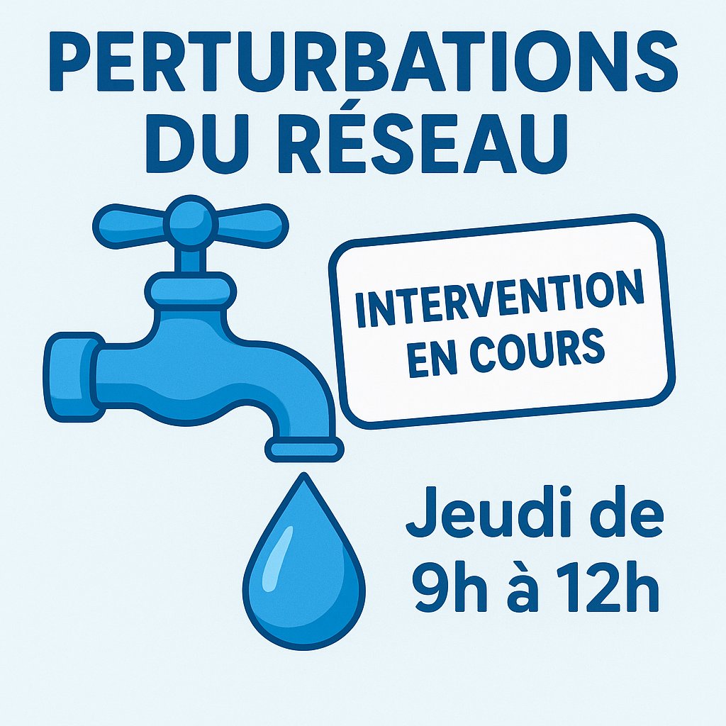 Durant cette période, des perturbations de la distribution d’eau sont susceptibles de se produire. Les équipes mettront tout en œuvre pour rétablir la situation dans les meilleurs délais.