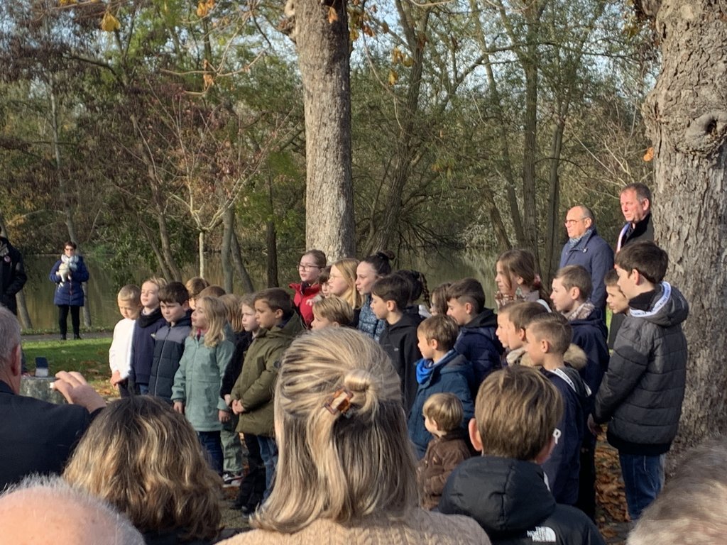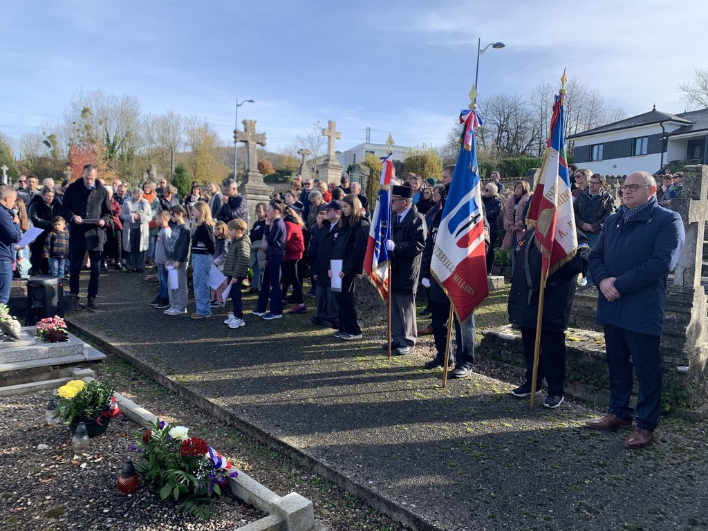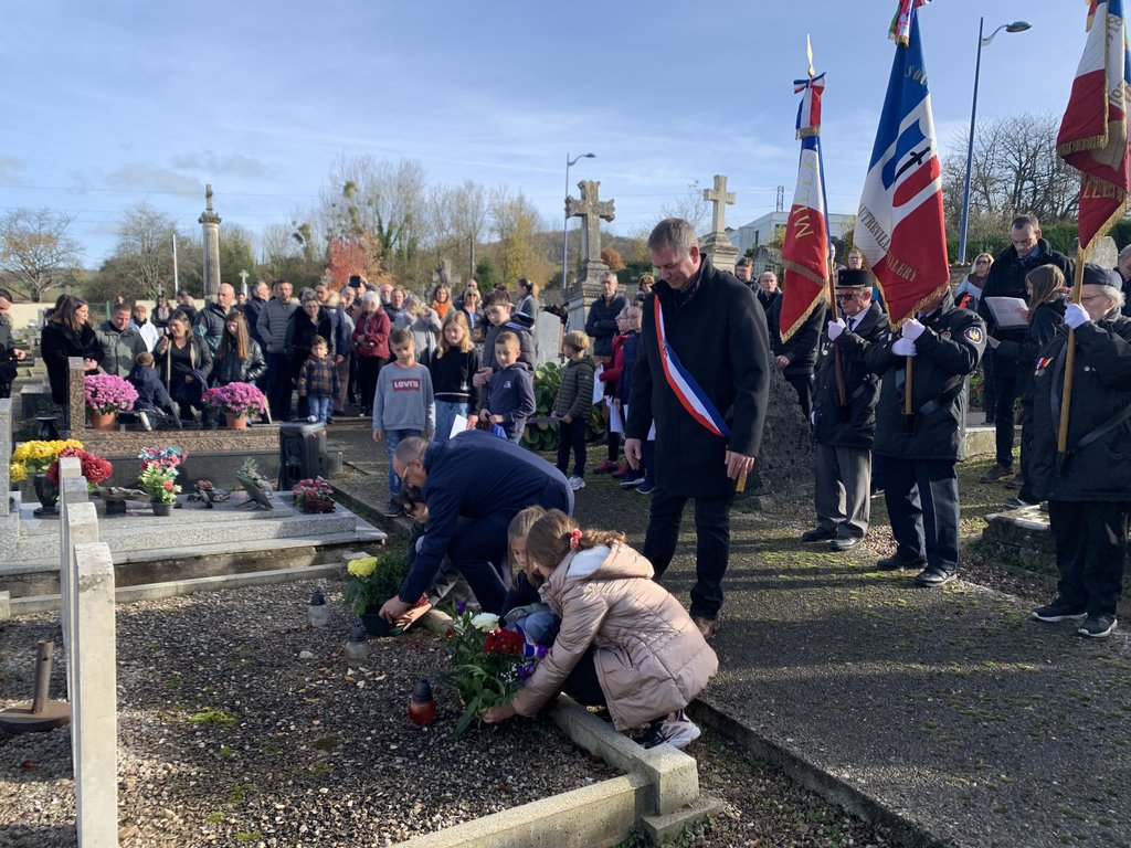 Les élèves de l’école Marguerite Reitz ont interprété avec ferveur La Marseillaise, en présence des membres du Souvenir Français, des jeunes sapeurs-pompiers, du maire Guillaume Poinsot et des élus du conseil municipal.