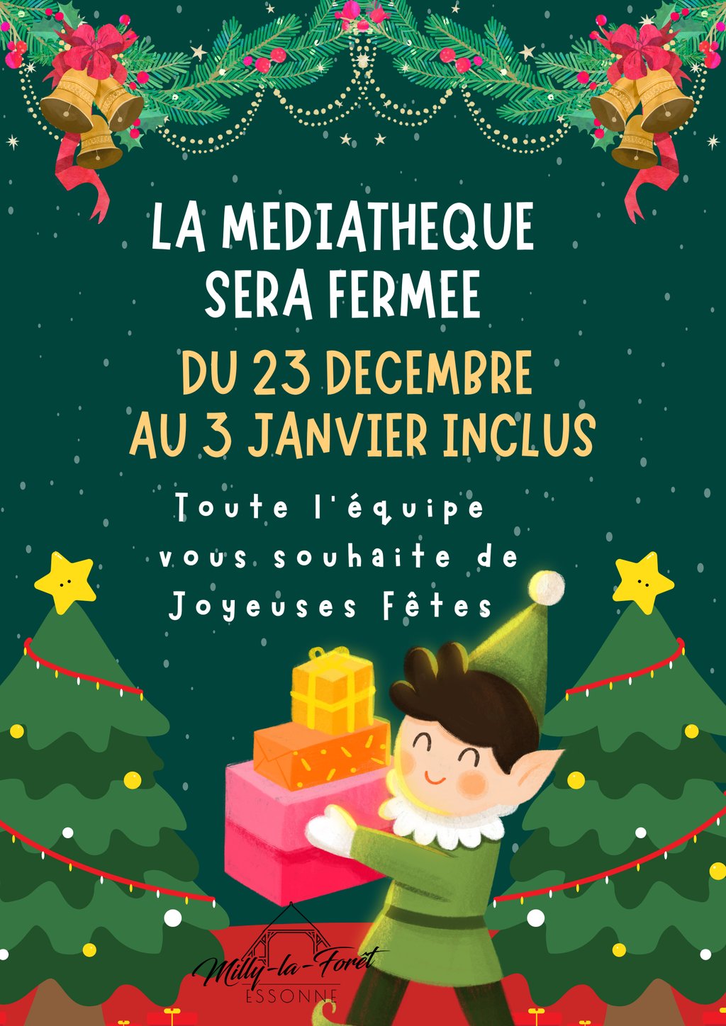 La médiathèque sera fermée du 23 décembre 2025 au 3 janvier 2026 inclus.