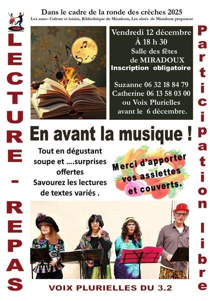 Tout en dégustant soupes...et surprises offertes Savourez les lectures de textes variés.