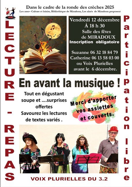 Soirée lecture repas des Voix Plurielles sur le thème de la Ronde des crèches : En avant la musique!
