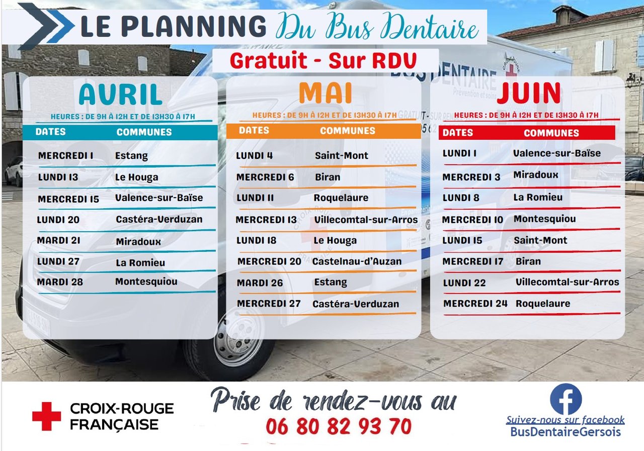 Planning du bus dentaire Avril- Mai- Juin
