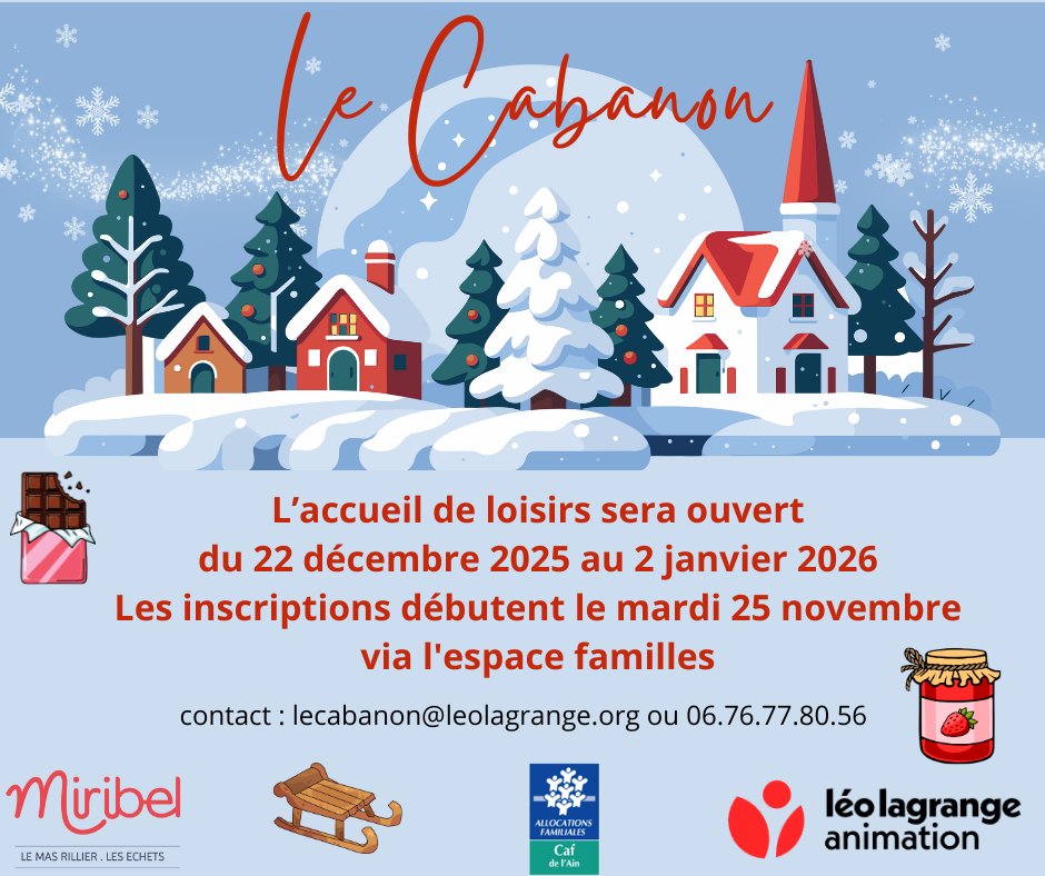 L’accueil de loisirs Le Cabanon sera ouvert du 22 décembre 2025 au 2 janvier 2026 🎉