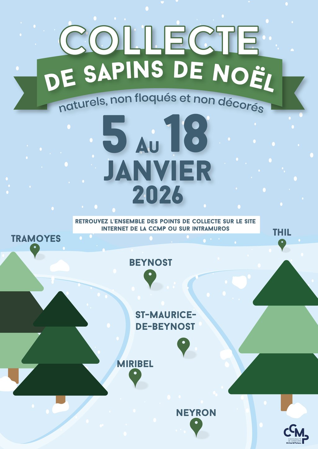 Du 5 au 18 janvier 2026, la CCMP organise une collecte de sapins de Noël naturels, non floqués et non décorés.