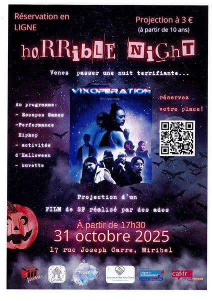 Pour Halloween, venez passer une "Horrible Night" avec CESAM: projection d'un film de Science Fiction réalisé par des ados, Escapes Games, performance Hip Hop, activités d'Halloween ... Tout pour passer un moment terrifiant mais convivial!