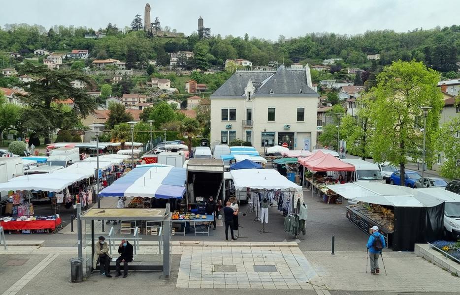 Marché hebdomadaire, le jeudi matin place du marché à Miribel.