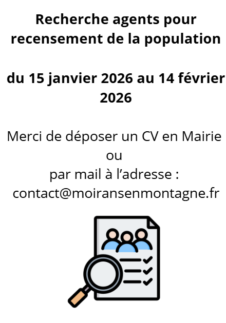 RECHERCHE AGENTS POUR RECENSEMENT DE LA POPULATION